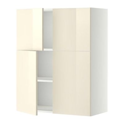 МЕТОД Навесной шкаф с полками/4дверцы - Рингульт глянцевый кремовый, белый
