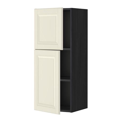 МЕТОД Навесной шкаф с полками/2дверцы - под дерево черный, Будбин белый с оттенком, 40x100 см