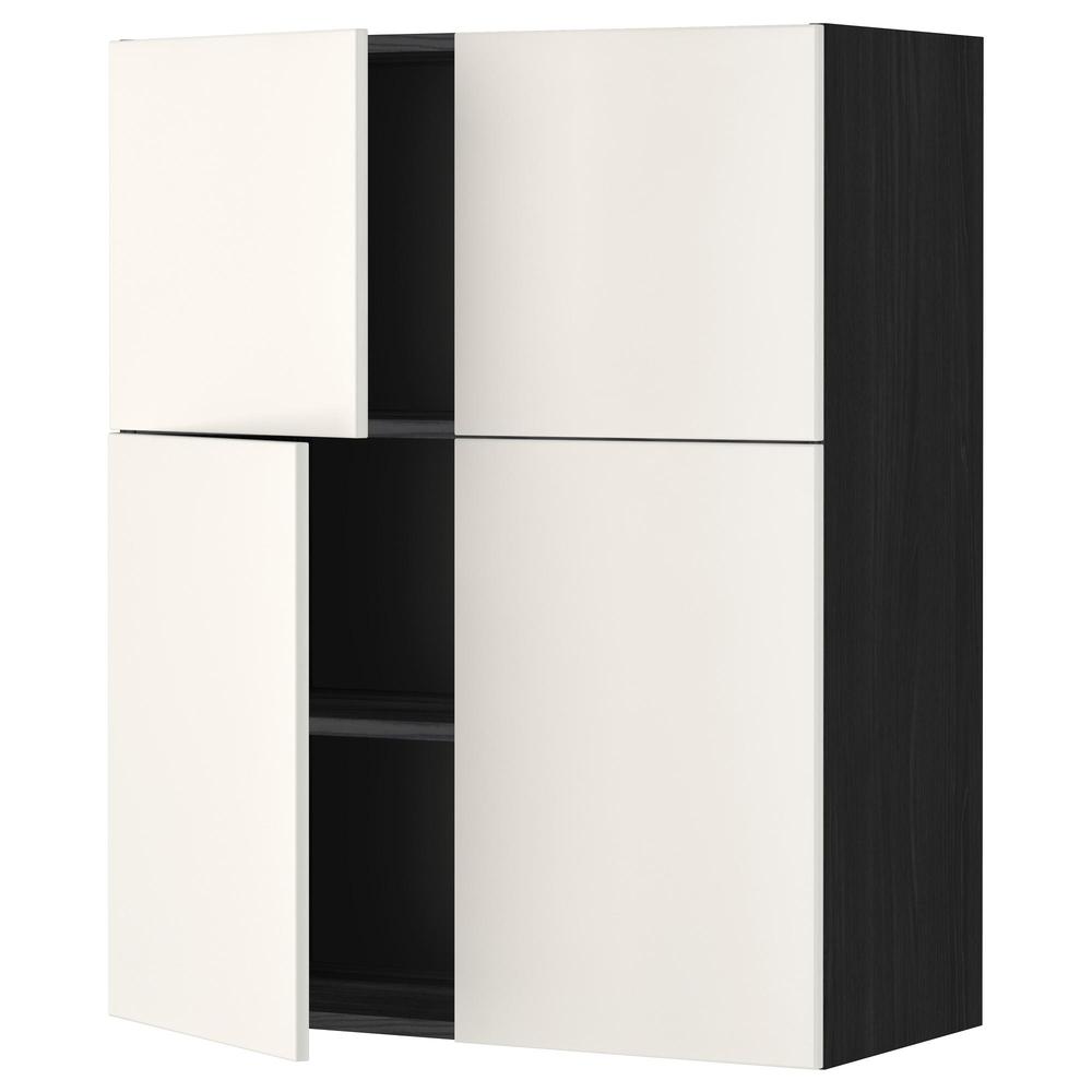 МЕТОД Навесной шкаф с полками/4дверцы - под дерево черный, Веддинге белый