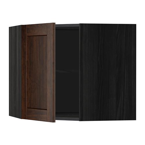 МЕТОД Угловой навесной шкаф с полками - под дерево черный, Эдсерум под дерево коричневый, 68x60 см