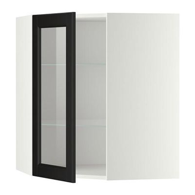 МЕТОД Углов навесн шк с полками/сткл дв - 68x80 см, Лаксарби черно-коричневый, белый