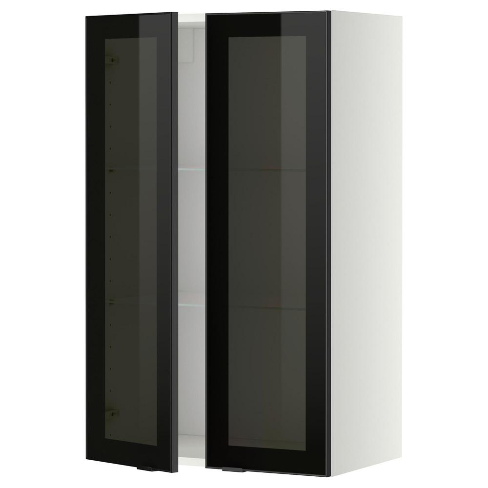 МЕТОД Навесной шкаф с полками/2 стекл дв - белый, Ютис дымчатое стекло/черный, 60x100 см