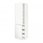 МЕТОД / ФОРВАРА Высокий шкаф+полки/3 ящика/2 дверцы - 60x60x200 см, Тингсрид под дерево черный, белый