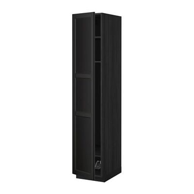 МЕТОД Выс шкаф с полками/проволоч корзин - 40x60x200 см, Лаксарби черно-коричневый, под дерево черный