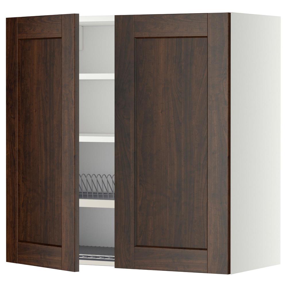 МЕТОД Навесной шкаф с посуд суш/2 дврц - белый, Эдсерум под дерево коричневый, 80x80 см