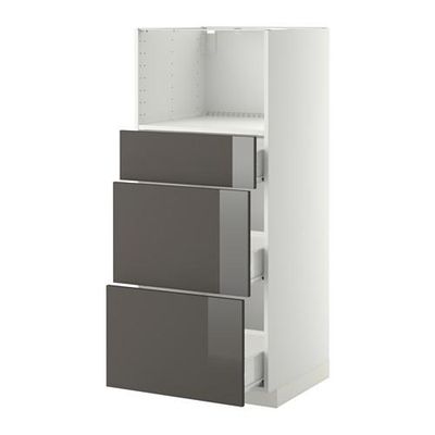 МЕТОД / ФОРВАРА Высокий шкаф д/СВЧ с 3 ящиками - Рингульт глянцевый серый, белый