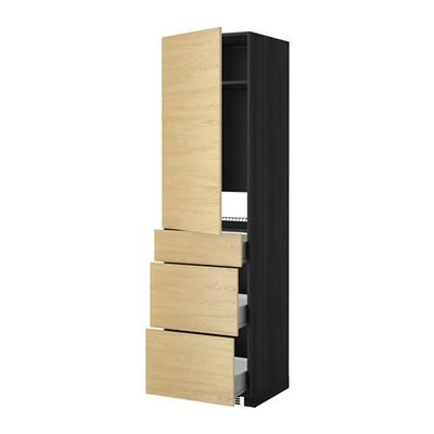 МЕТОД / ФОРВАРА Выс шкаф д/холодильн, с дврц/3 ящ - Тингсрид под березу, под дерево черный