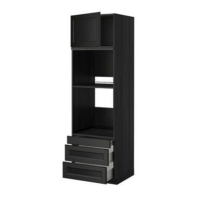 МЕТОД / ФОРВАРА Выс шкаф д/дхвк/комб дхвк+двр/3ящ - 60x60x200 см, Лаксарби черно-коричневый, под дерево черный