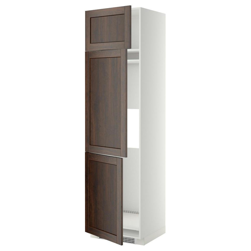 МЕТОД Выс шкаф для хол/мороз с 3 дверями - белый, Эдсерум под дерево коричневый, 60x60x220 см