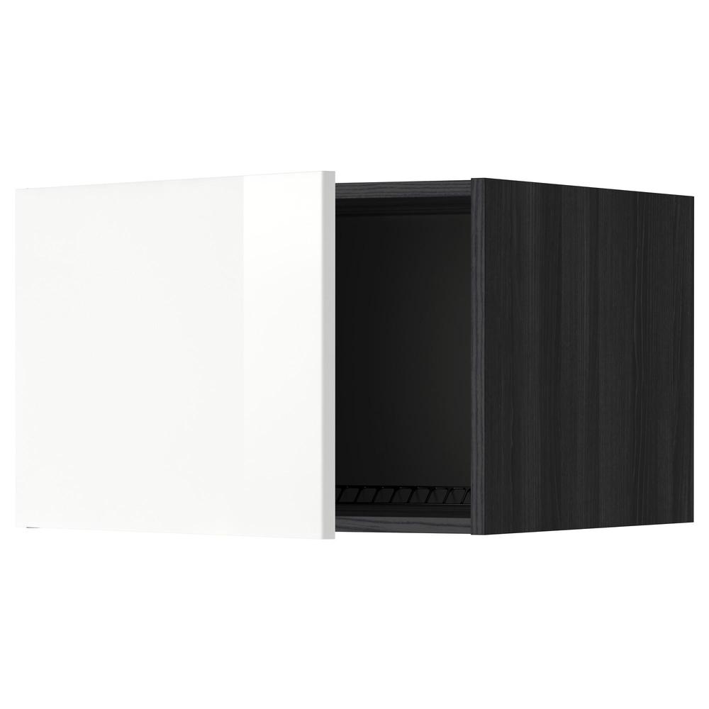 МЕТОД Верх шкаф на холодильн/морозильн - под дерево черный, Рингульт глянцевый белый, 60x40 см