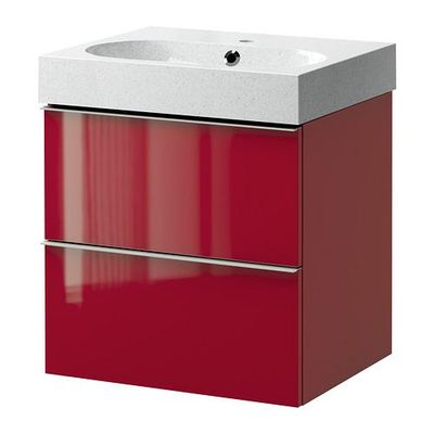 ГОДМОРГОН/БРОВИКЕН Шкаф для раковины с 2 ящ - глянцевый красный/светло-серый