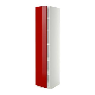 МЕТОД Высок шкаф с полками - 40x60x200 см, Рингульт глянцевый красный, белый