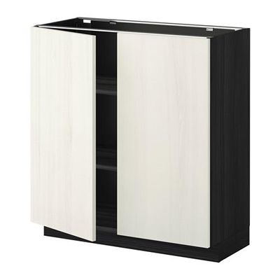 МЕТОД Напол шкаф с полками/2двери - 80x37 см, Росдаль белый ясень, под дерево черный