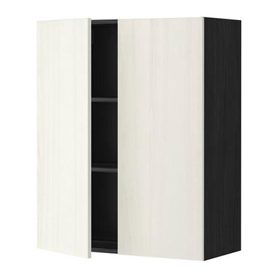 МЕТОД Навесной шкаф с полками/2дверцы - 80x100 см, Росдаль белый ясень, под дерево черный