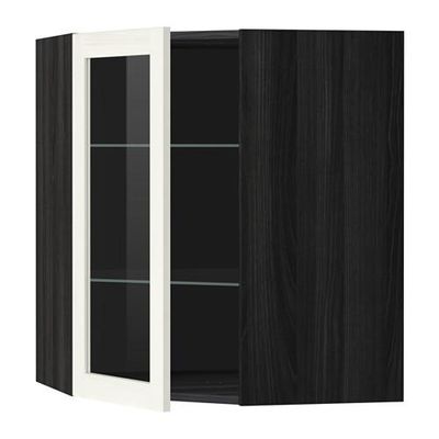 МЕТОД Углов навесн шк с полками/сткл дв - 68x80 см, Росдаль белый ясень, под дерево черный