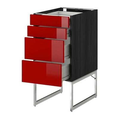 МЕТОД / ФОРВАРА Нплн шк 4 фронт/2 низк/2средн ящ - 40x60x60 см, Рингульт глянцевый красный, под дерево черный