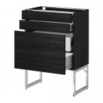 МЕТОД / ФОРВАРА Напольн шкаф 3фронт пнл/2низ/2ср ящ - 80x60x60 см, Тингсрид под дерево черный, под дерево черный