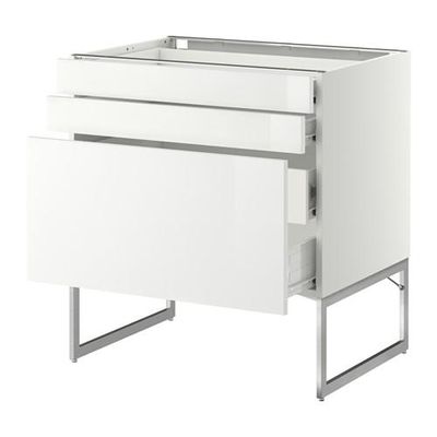 МЕТОД / ФОРВАРА Напольн шкаф 3фронт пнл/2низ/2ср ящ - 80x60x60 см, Рингульт глянцевый белый, белый
