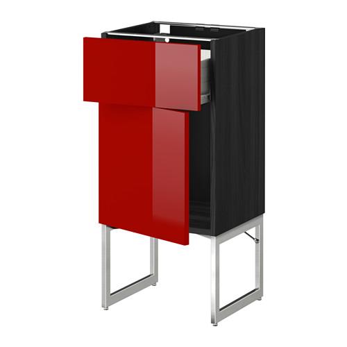 МЕТОД / ФОРВАРА Напольный шкаф с ящиком/дверью - 40x37x60 см, Рингульт глянцевый красный, под дерево черный