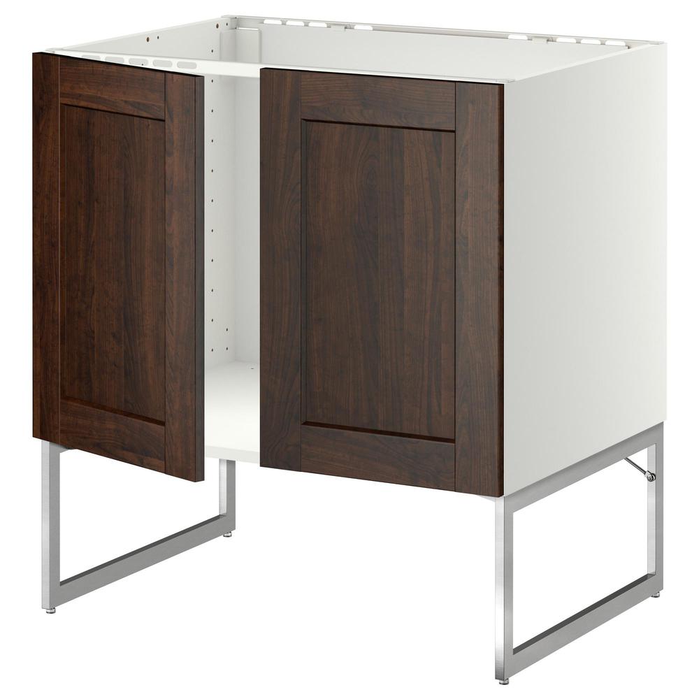 МЕТОД Напольн шкаф д раковины+2 двери - белый, Эдсерум под дерево коричневый