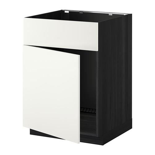 МЕТОД Напольный шкаф п-мойку с дв/фр пнл - под дерево черный, Хэггеби белый