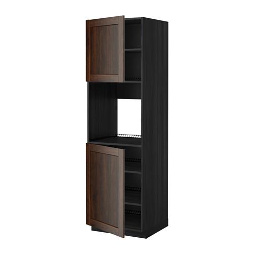 МЕТОД Высок шкаф д/духовки/2дверцы/полки - под дерево черный, Эдсерум под дерево коричневый, 60x60x200 см