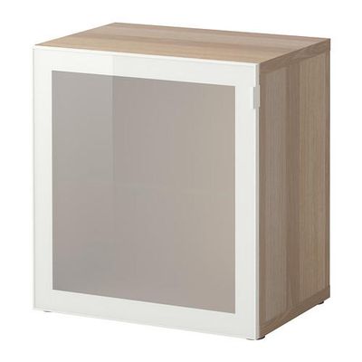 БЕСТО Стеллаж со стеклянн дверью - под беленый дуб/Глассвик белый/матовое стекло
