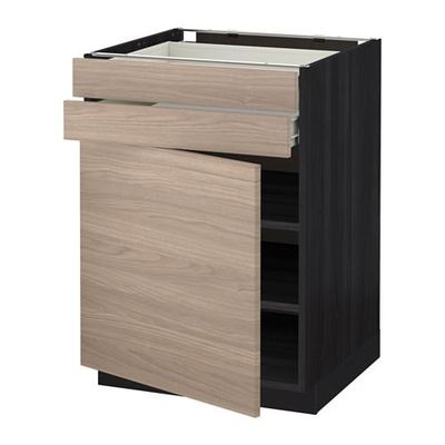 МЕТОД / ФОРВАРА Напольный шкаф с дверцей/2 ящиками - 60x60 см, Брокхульт под грецкий орех светло-серый, под дерево черный