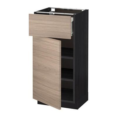 МЕТОД / ФОРВАРА Напольный шкаф с ящиком/дверью - 40x37 см, Брокхульт под грецкий орех светло-серый, под дерево черный