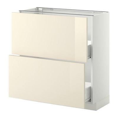 МЕТОД / ФОРВАРА Напольный шкаф с 2 ящиками - 80x37 см, Рингульт глянцевый кремовый, белый