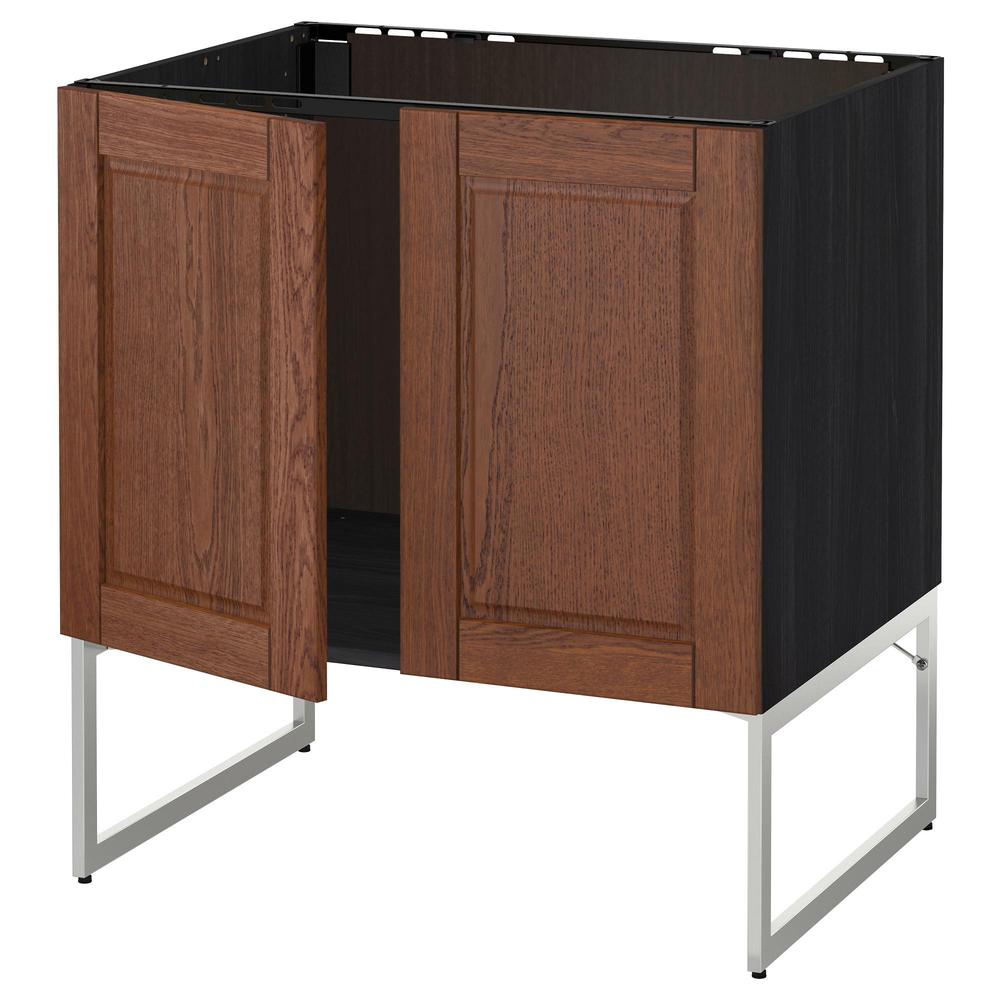 МЕТОД Напольн шкаф д раковины+2 двери - под дерево черный, Филипстад коричневый