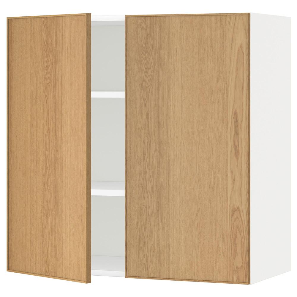 МЕТОД Навесной шкаф с полками/2дверцы - белый, Экестад дуб, 80x80 см