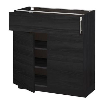 МЕТОД / ФОРВАРА Напольный шкаф+ящик/2дверцы - 80x37 см, Тингсрид под дерево черный, под дерево черный
