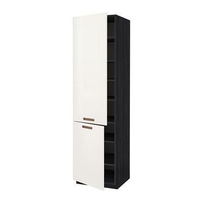 МЕТОД Высокий шкаф с полками/2 дверцы - 60x60x220 см, Мэрста белый, под дерево черный