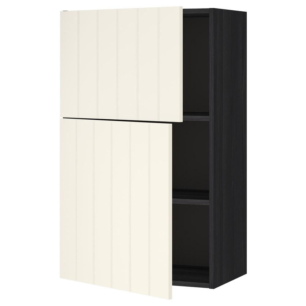 МЕТОД Навесной шкаф с полками/2дверцы - под дерево черный, Хитарп белый с оттенком