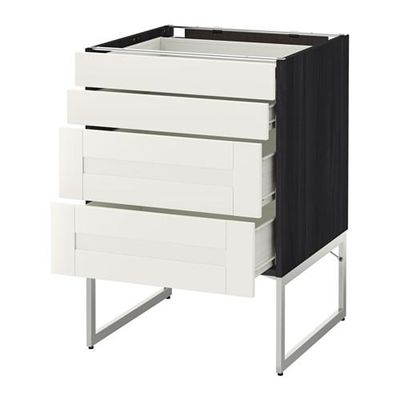МЕТОД / ФОРВАРА Нплн шк 4 фронт/2 низк/2средн ящ - 60x60x60 см, Сэведаль белый, под дерево черный
