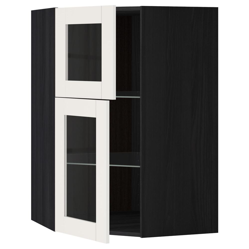МЕТОД Углов навесной шкаф+полки/2 сткл дв - под дерево черный, Сэведаль белый