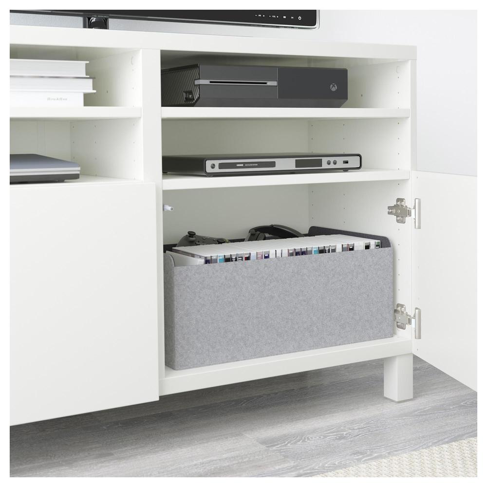 БЕСТО Тумба под ТВ, с дверцами - белый Синдвик/Лаппвикен светло-серый прозрачное стекло, 180x40x48 см, направляющие ящика, плавно закр 0.0/5 оценка (0 голосов)