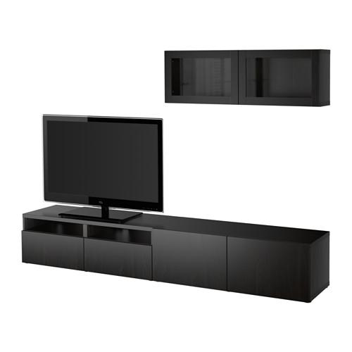 БЕСТО Шкаф для ТВ, комбин/стеклян дверцы - Лаппвикен/Синдвик черно-коричневый прозрачное стекло, направляющие ящика, плавно закр