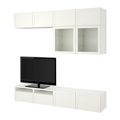 БЕСТО Шкаф для ТВ, комбин/стеклян дверцы - Ханвикен/Синдвик белый прозрачное стекло, направляющие ящика,нажимные