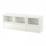 БЕСТО Тумба под ТВ, с дверцами и ящиками - белый/Сельсвикен глянцевый/бежевый прозрачное стекло, направляющие ящика,нажимные