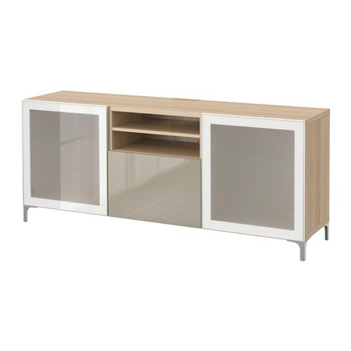 БЕСТО Тумба д/ТВ с ящиками - под беленый дуб/Сельсвикен глянцевый/бежевый матовое стекло, направляющие ящика, плавно закр