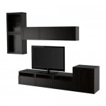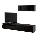 БЕСТО Шкаф для ТВ, комбин/стеклян дверцы - Ханвикен/Синдвик черно-коричневый прозрачное стекло, направляющие ящика,нажимные