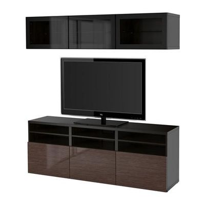 БЕСТО Шкаф для ТВ, комбин/стеклян дверцы - черно-коричневый/Сельсвикен глянцевый/коричневый прозрач стекло, направляющие ящика,нажимные
