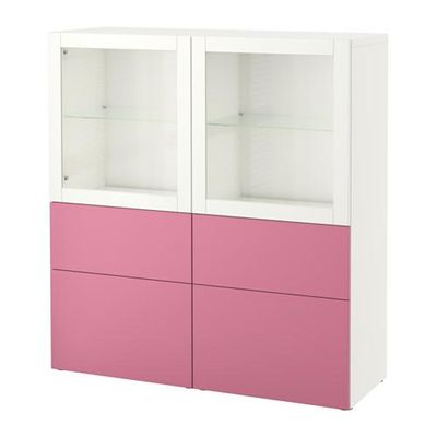 БЕСТО Комбинация д/хранения+стекл дверц - Лаппвикен розовый/Синдвик белый прозрачное стекло, направляющие ящика,нажимные