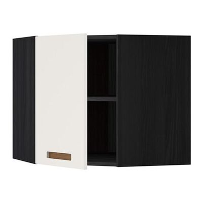 МЕТОД Угловой навесной шкаф с полками - 68x60 см, Мэрста белый, под дерево черный