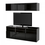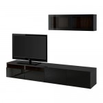 БЕСТО Шкаф для ТВ, комбин/стеклян дверцы - направляющие ящика,нажимные, черно-коричневый/Сельсвикен глянцевый/черный прозрачное стекло