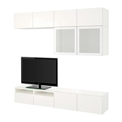 БЕСТО Шкаф для ТВ, комбин/стеклян дверцы - направляющие ящика, плавно закр, белый/Сельсвикен глянцевый/белый матовое стекло