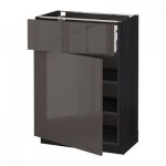 МЕТОД / МАКСИМЕРА Напольный шкаф с ящиком/дверью - 40x60 см, Рингульт глянцевый серый, под дерево черный