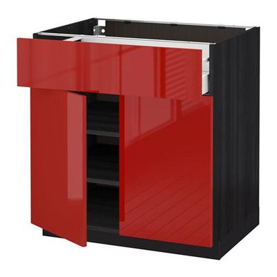 МЕТОД / МАКСИМЕРА Напольный шкаф+ящик/2дверцы - 80x60 см, Рингульт глянцевый красный, под дерево черный